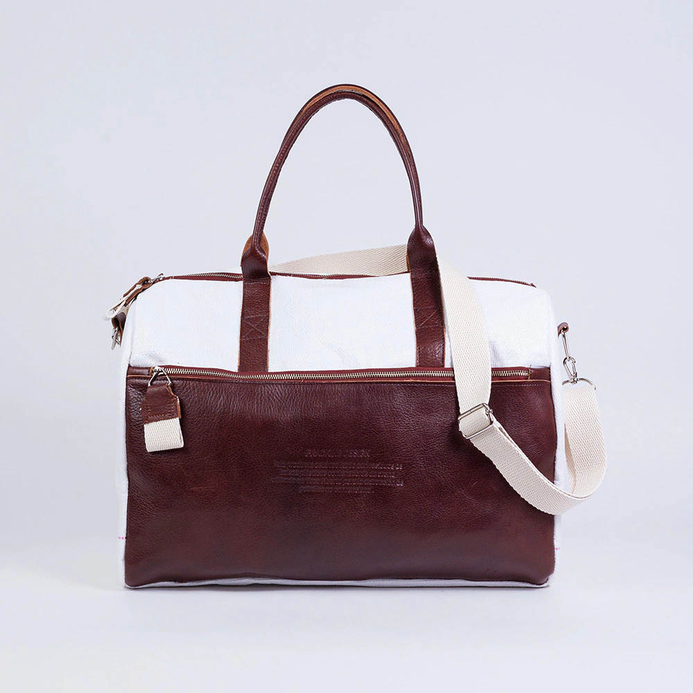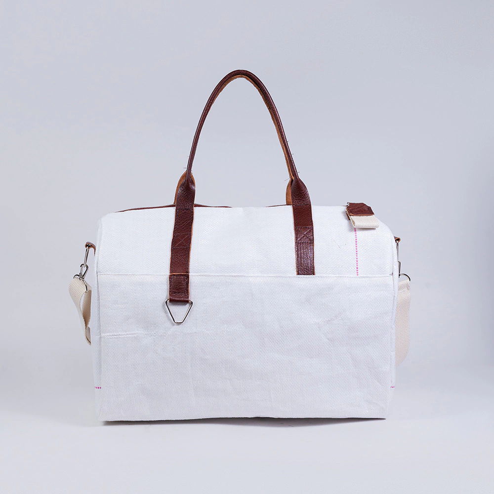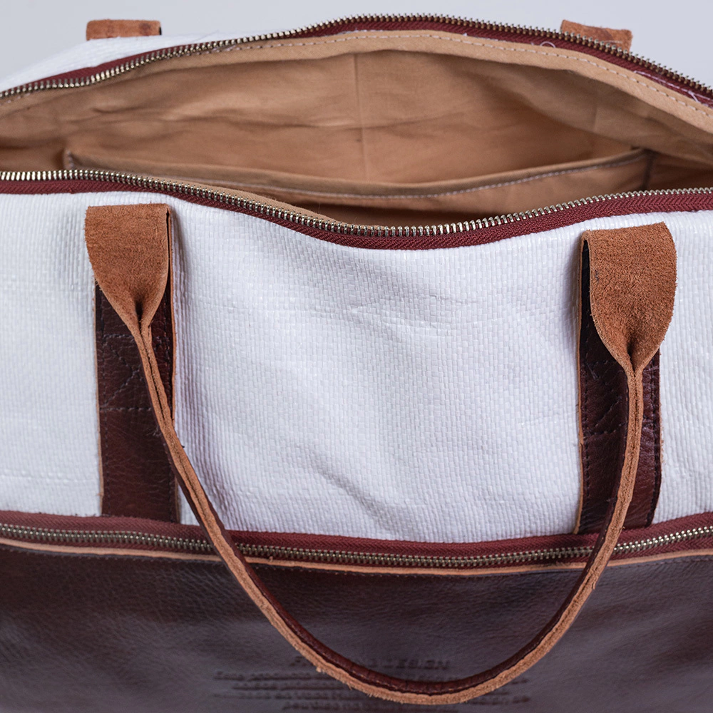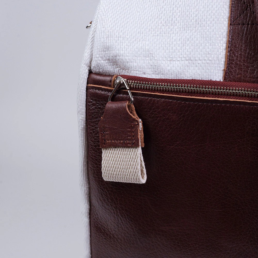 - Maxi Bolso confeccionado con Big Bags Plásticas Recicladas provenientes de Vaca Muerta y combinado con cuero vacuno de descartes.