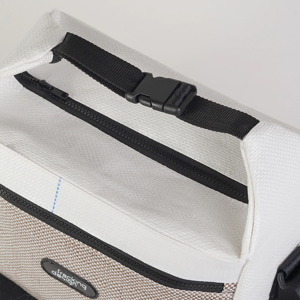 - Conservadora térmica confeccionada reciclando bolsas plásticas, dándole así una segunda oportunidad reinsertándolas en una economía circular.