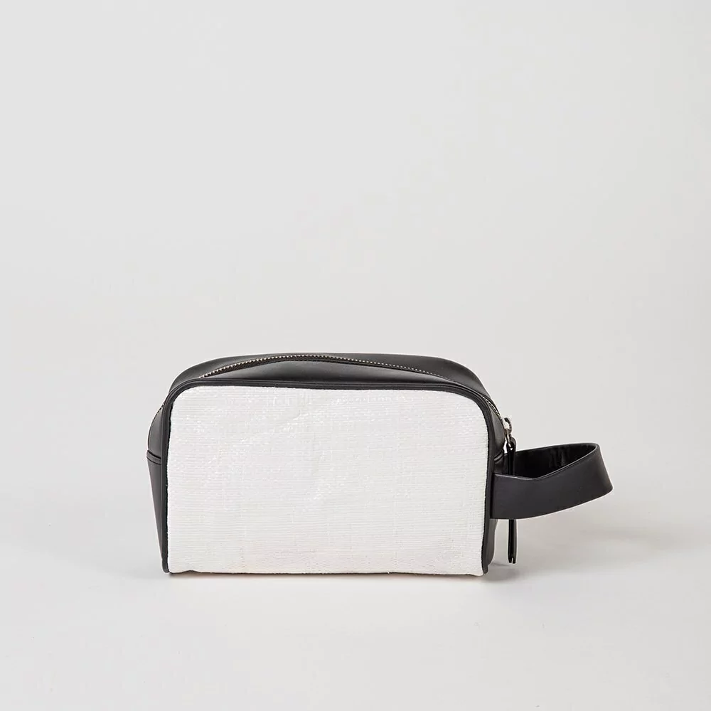 - Neceser confeccionado con Big Bags Plásticas Recicladas provenientes de Vaca Muerta combinada con Cuero Vacuno de descartes.