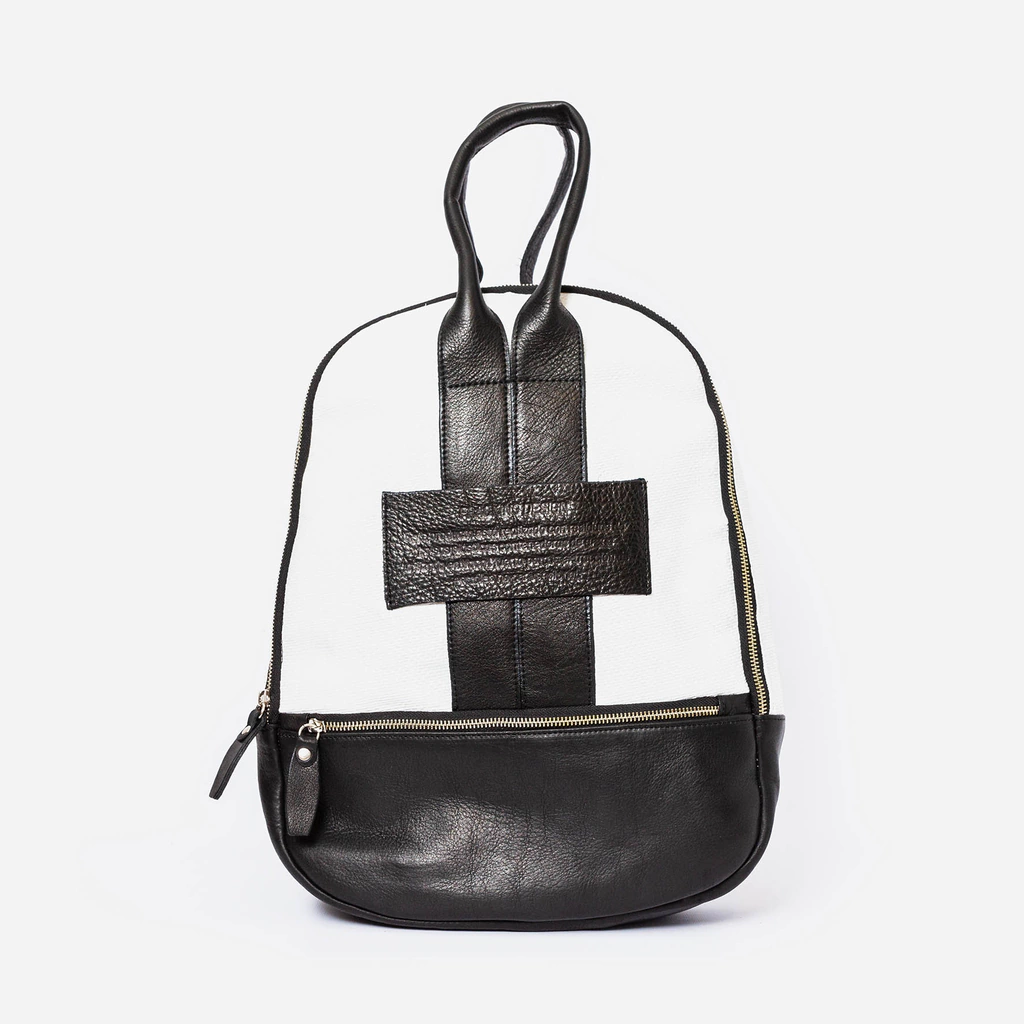 - Backpack made with Recycled Plastic Big Bags combined with discard leather.